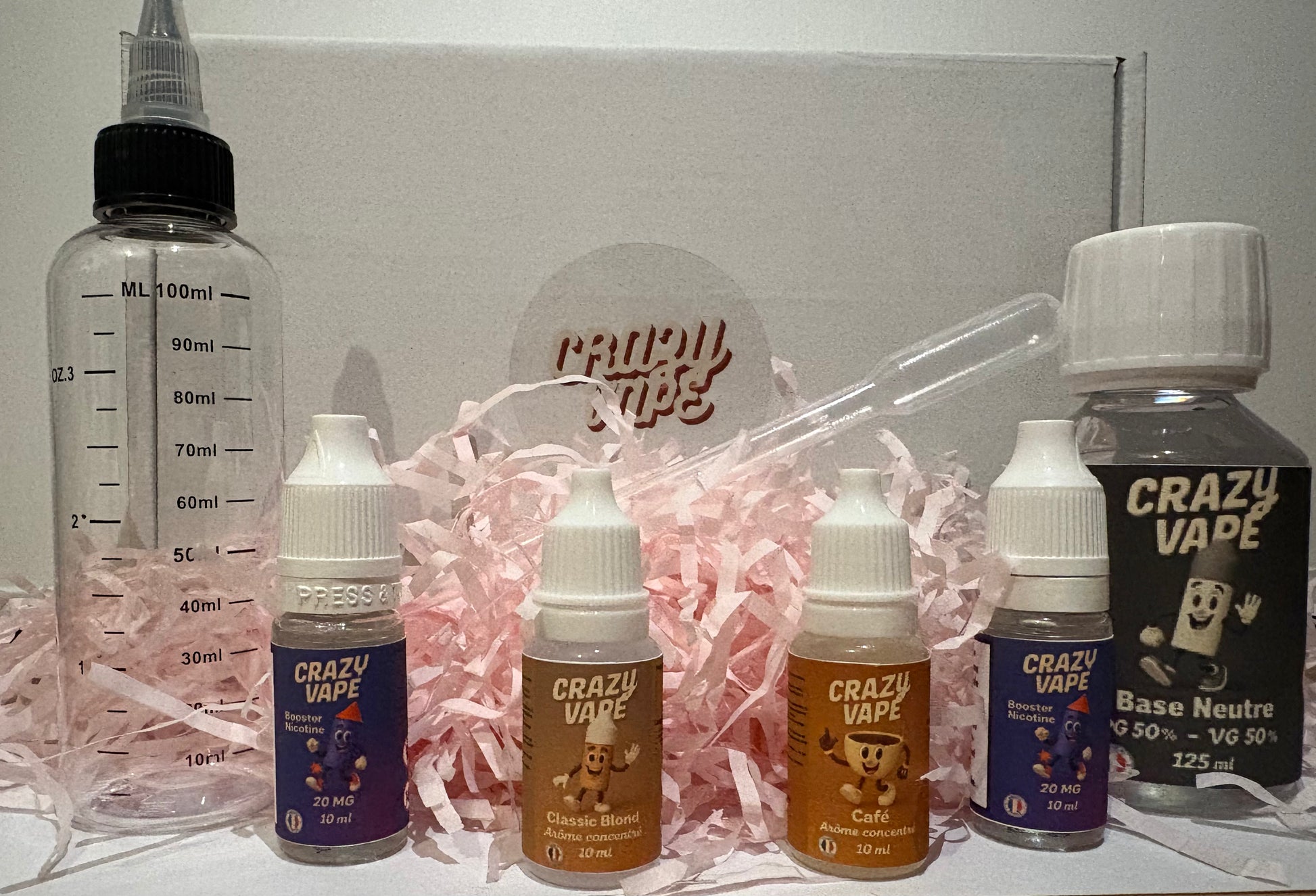 Mélangez la base, les arômes et les boosters de nicotine (si nécessaire) dans le flacon fourni. Secouez bien et laissez maturer selon les recommandations de l'arôme choisi.